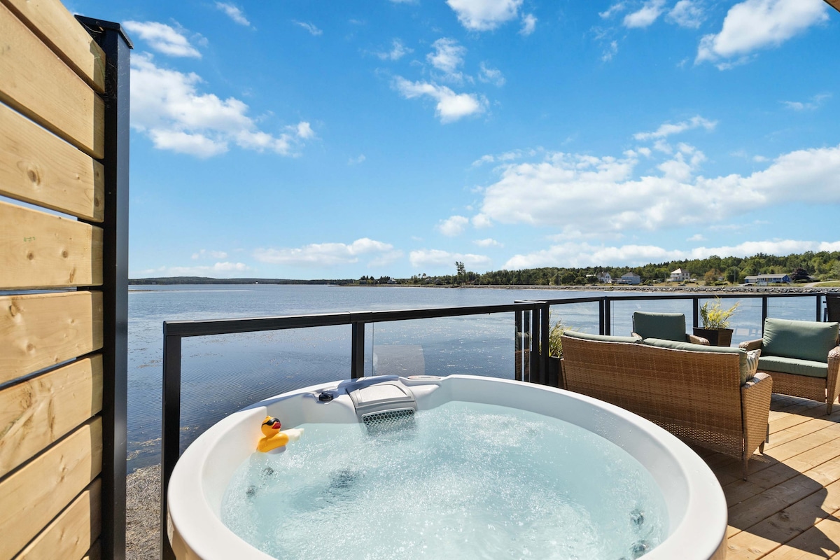 The ESCAPE provides a private oceanfront retreat for you and your family or friends to enjoy. Modern newly built house on large private oceanfront lot. Enjoy the endless ocean views from the large oversized deck, relaxing hot tub, large lawn or oceanfront fire pit. Explore the rocky shoreline and beach areas from your front steps! This remarkable getaway is located less than 1.5hrs from Halifax and is a short drive off the highway.