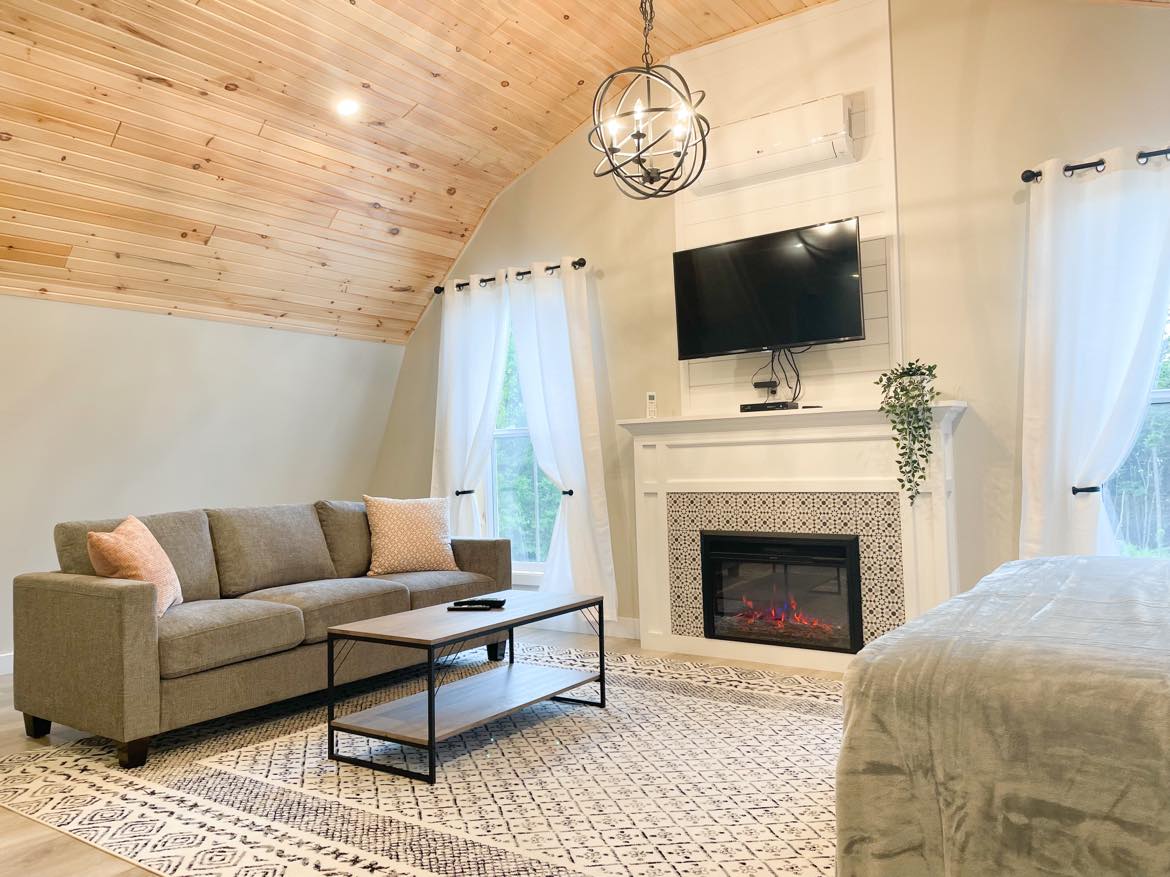 Stay in an upscale place that’s near everything you want to visit. This king sized room offers a full bathroom with jetted tub, smart tv, fireplace, dining area, as well as a kitchenette. This unit is self contained with it’s own deck. A quick walk to Souris beach and boardwalk. PEI Tourism number 1300772.