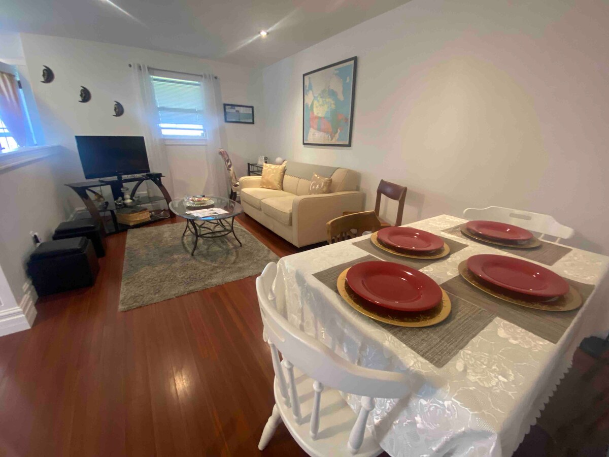 UPGRADED/BIGGER SPACE located in the Annapolis Valley. This flat is a beautiful escape whether it be business or pleasure it has all the needs of home.Sleeps 6 quests with 2 double beds and a fold down comfy futon.Electric fire place.Full kitchen, coffee, bbq, patio, washer & dryer. (see full amenities). Digital cable, Smart TVs, Wifi and Netflix provided.Mins away from the #1 Hwy, and the #101 Hwy to all towns, and tourism needs.5 min drive to the hospital for personal or professional stay.
