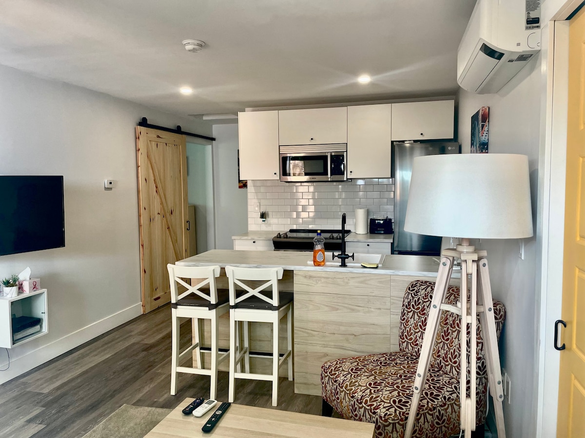 Yarmouth:Pet friendly 630 sq ft units with 75"TV and all appliances plus coffee maker. 2018 construction. Located 4 minutes from Cat Ferry in East Side Village. Water source is an artesian well and treated with ultra violet lights , no chlorine, no chems, best water in town. Malls and cinema 3 minutes away. Private parking, no large noisy parking lots or common hallways with late night traffic...very quiet and safe neighborhood. Enjoy your sleep with a Stearns/Foster mattress in the bedroom.