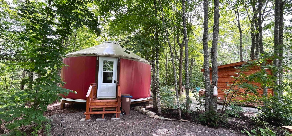 Summer season open from (May 8 - Oct 31, 2026) and Winter Season (Jan-April weekends only). We offer one night stays! Enjoy this secluded off grid (solar powered) cosy yurt, eclectic furnishings - situated in a private forest environment. On the deck a BBQ with cooking utensils and patio set are provided in summer - no water during winter season (Nov-April 30) - a small chemical toilet is provided. Enjoy the comfortable simplicity and relax in nature; sauna service available 50$.