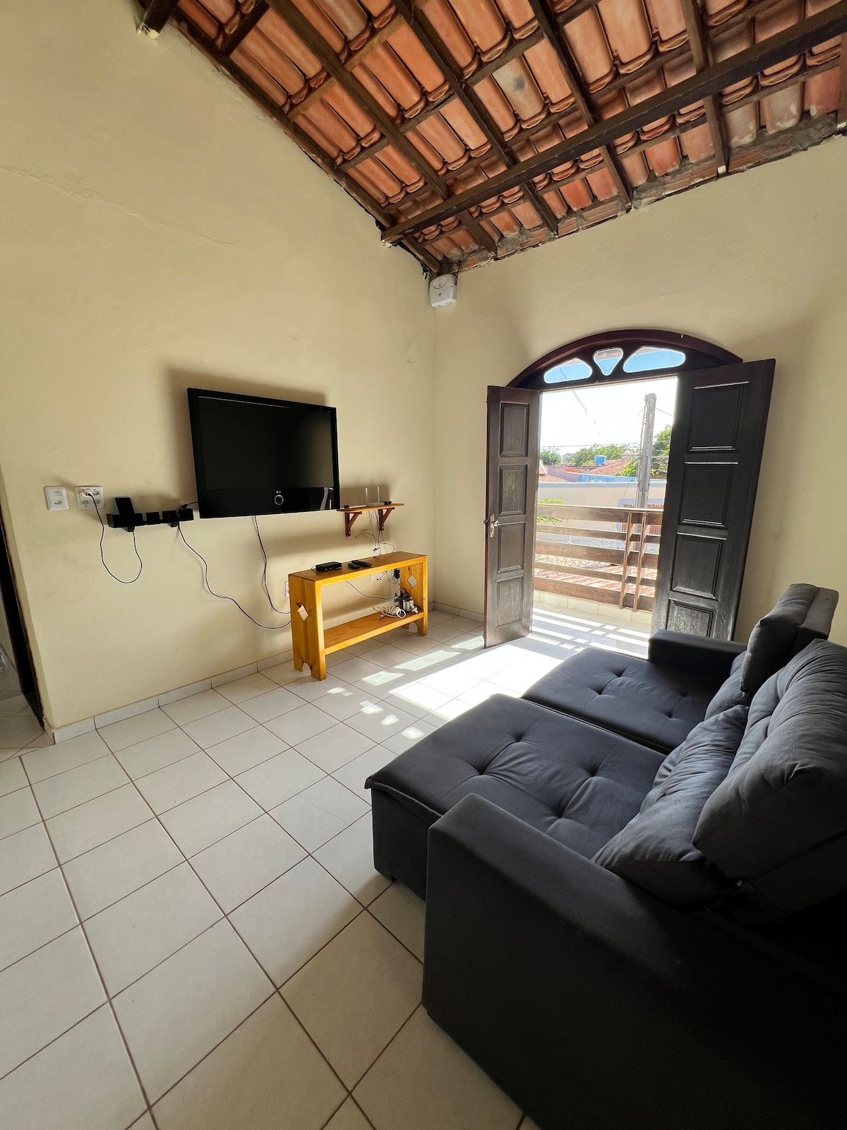 Private place for special moments with the whole family or an intimate getaway at this peaceful place, near the beach (Praia do pau fincado) . Only 3 blocks away or 6 minutes walk and you will have your feet in the warm waters of the Atlantic Ocean. Fully equipped, newly furnished, we offer free WiFi and 2 TVs with channels, 2 bedrooms, 2 bathrooms, gourmet area, with brick barbecue grill, swimming pool, 2 outside showers, small garden with water fountain, 2 hammocks, and many more features!
