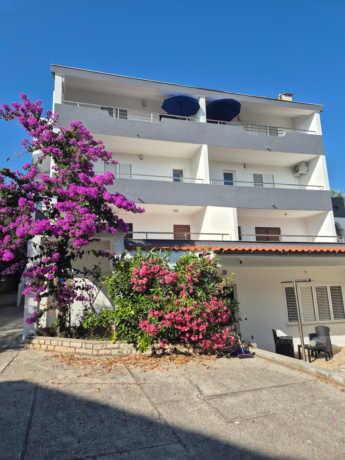 This is a perfect choice for people who want to enjoy their holidays and relax.Great for families, but also for people who want to party.If you want to chill, go to the beach or play basketball, you can do it. If you want to party, Zrce is 20min walk away. We offer lots of indoor space and a big terrace overlooking the beautiful sea.Washing machine & coffee machine available.