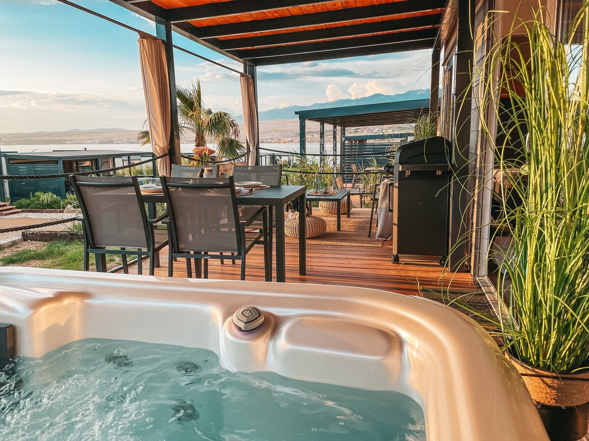 The apartment is located in a quiet part of Novalja. The city center and the Riviera are just a 7 minute walk away. In the immediate vicinity of the apartment there are various bars and restaurants as well as food markets. The well-known party beach "Zrce" can be reached by car in 6 minutes. The house is accessible from both sides. The apartment offers 3 star accommodation with a hot tub and a terrace + sea views.