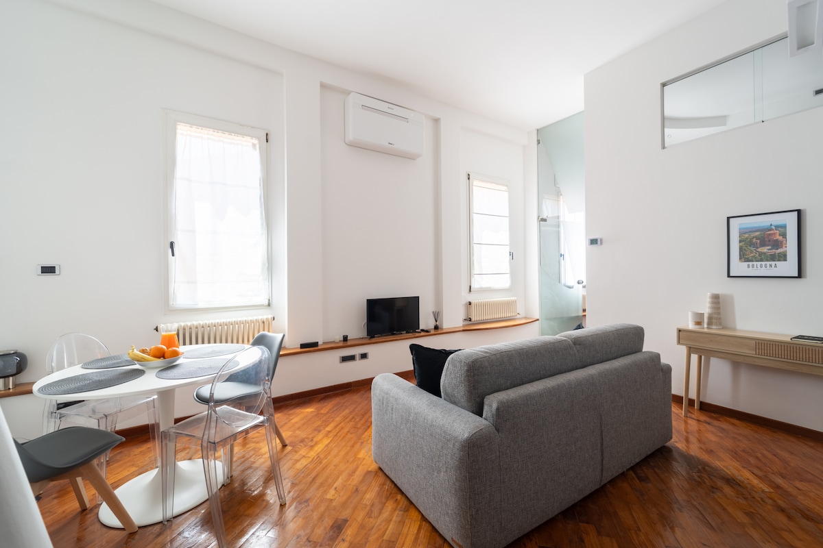 An exclusive private charming home totally restored located in an historical building in the oldest part downtown. Bologna Boutique Home è una boutique home di charme e fascino,completamente ristrutturata, nella corte di uno storico palazzo del ‘300 sotto le Due Torri. Accogliente e confortevole casa di 80 mq sviluppato su 3 livelli, con 2 camere da letto, 1 matrimoniale, 2 letti singoli, 2 bagni privati, set di cortesia, fine biancheria da letto, cucina ultra moderna, living room con TV da 55'