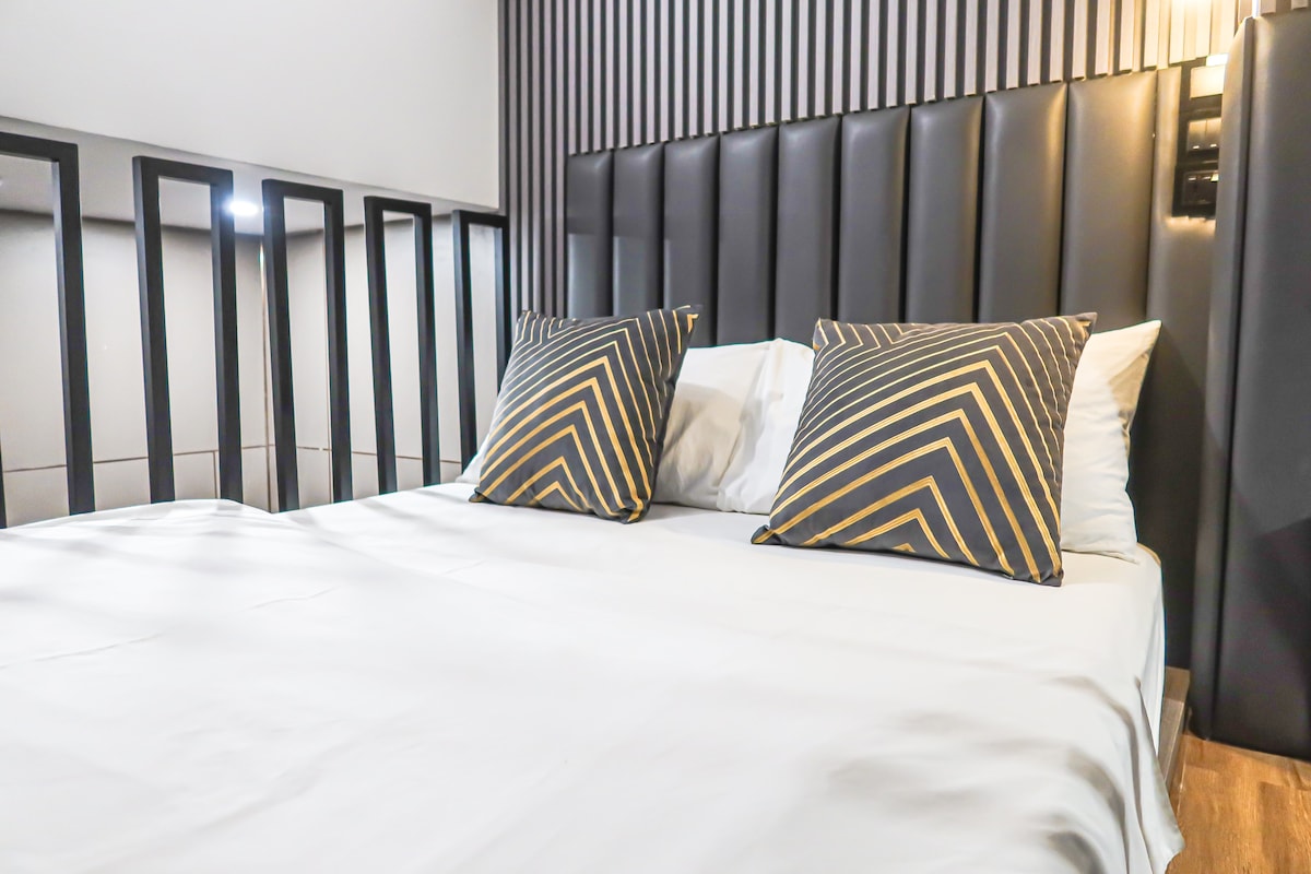 Our Premium Loft Plus has a unique layout that has a bedroom on an upper loft for added privacy. The high ceilings coupled with large windows create an airy and spacious feel in the apartment. Close proximity to landmarks such as CHIJMES, Suntec City, and Esplanade Food and grocery options are also only a stone’s throw away! Height clearance of the loft is 1.6m Apartment size: Approximately 190 sqft