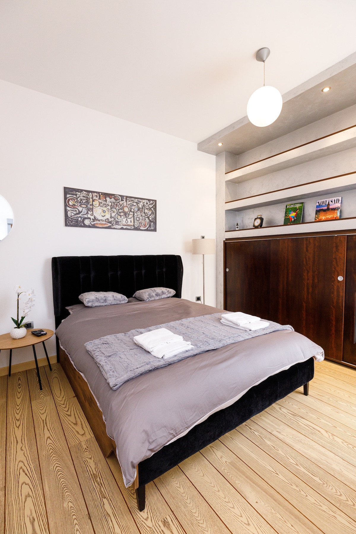 Relax in this tranquil, elegant space. The apartment is completely renovated, modern, functional, aesthetically pleasing. It is located in the urban part of Novi Sad at Liman 3, near the Danube, with very well connected bus and taxi lines to all parts of the city. The apartment is about 5 km from the Petrovaradin fortress and the city center. Nearby there are supermarkets, quiet restaurants, hair salons. There is a large free parking lot in front of the building itself. It's yours to enjoy!