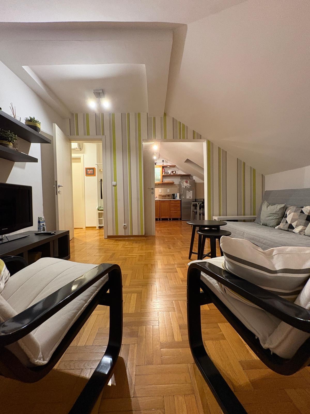 Very nice studio located in beautiful quiet street just a 10 minutes walk from the city center of Novi Sad. Whether you are staying for business, pleasure or just need a place for sleep, you will be very satisfied with the space. Near the studio there are located all bus stations which can bring you to all the best locations in the city (fortress, beach, parks etc.)