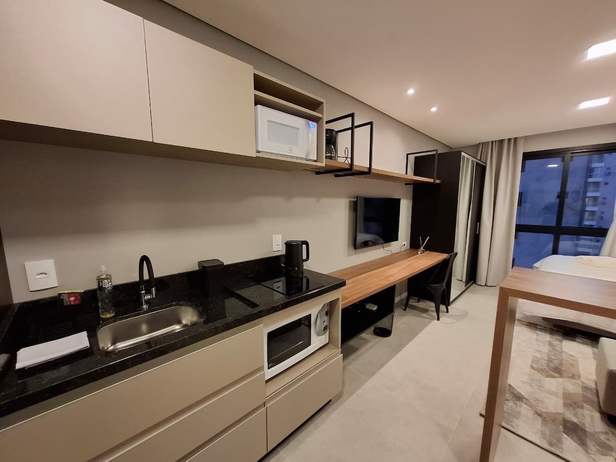 Studio Moderno | Perto da Feevale – NH Studio completo e super funcional, perfeito para quem vem estudar, trabalhar ou curtir a cidade. Ambiente em conceito aberto, com cama box de casal, sofá, TV e home office integrado. Cozinha americana equipada com cooktop, micro-ondas, geladeira e bancada multifuncional — ideal para refeições rápidas ou estudos. Condomínio com lounge a céu aberto, lareira ecológica, chimarródromo, bicicletário e pet place.