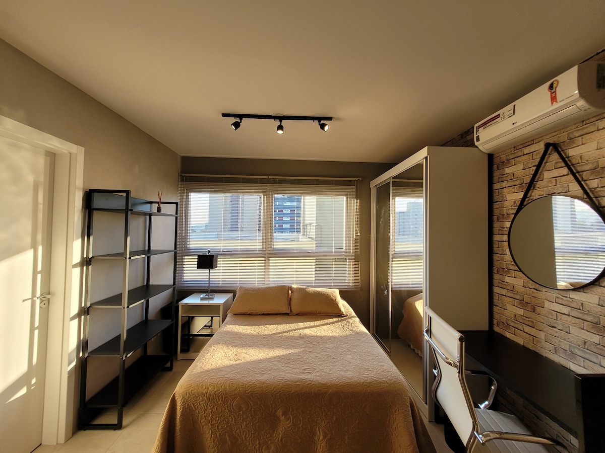 Estúdio Executivo em NH: Conforto, Foco e Mobilidade Central. Perfeito para quem viaja a negócios. Design acolhedor e totalmente equipado para sua produtividade. Localização Imbatível: A 10 min a pé do Centro e Estação Trensurb. Acesso rápido à Fenac e Esteio para feiras e eventos. Seu diferencial: Rua silenciosa e arborizada para máximo descanso. Infraestrutura completa (supermercado, farmácia, restaurantes e academia) ao lado. Praticidade e eficiência garantidas.