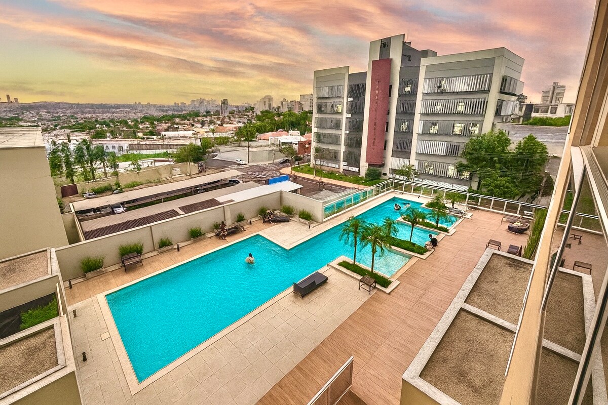 Apartamento Studio novo e moderno localizado em região nobre de Ribeirão Preto , conta com Wi-Fi , ar condicionado , cozinha completa , smart Tv 40’ , Academia BlueFit no prédio , Air fryer , vaga de garagem e área de lazer completa , piscina , sauna , salão de jogos , espaço gourmet , espaço coworking para trabalho , home market 24h e a melhor localização da cidade , na avenida Presidente Vargas a 3 minutos do Ribeirão shopping e próximo aos melhores parques , bares e restaurantes de Ribeirão.