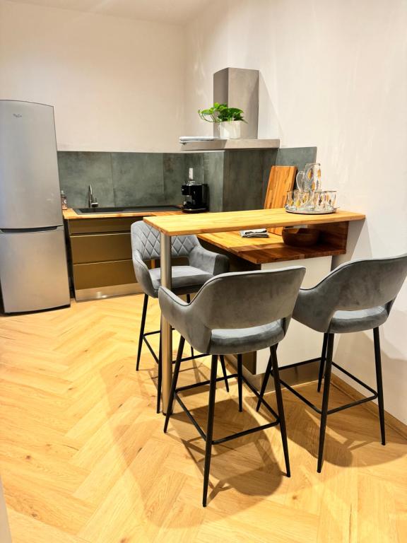 🌿 Dopřejte si pobyt v moderním apartmánu laděném do příjemných zelených tónů a vychutnejte si každý den skvělou snídani v OLLIES bistru! 🛌 Apartmán je ideální pro 1–4 osoby. K dispozici je velká postel (180×200 cm) s kvalitní matrací a rozkládací gauč (140 cm), který po rozložení poskytuje rovnou a pohodlnou plochu na spaní až pro 2 osoby. 🍳 Snídaně zahrnuje: snídaňové jídlo, kávu nebo čaj a fresh džus na osobu.