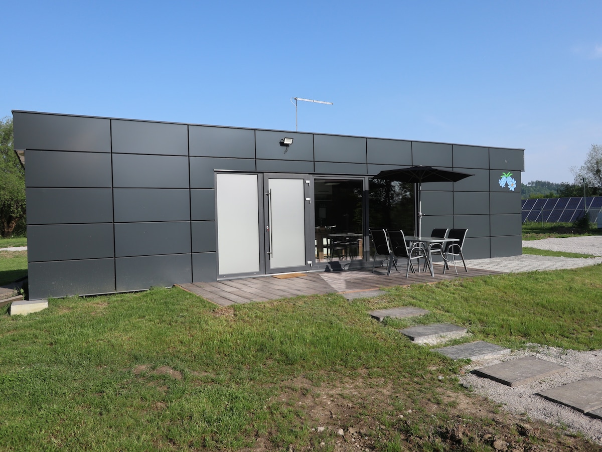 位于草地中间的被动房屋