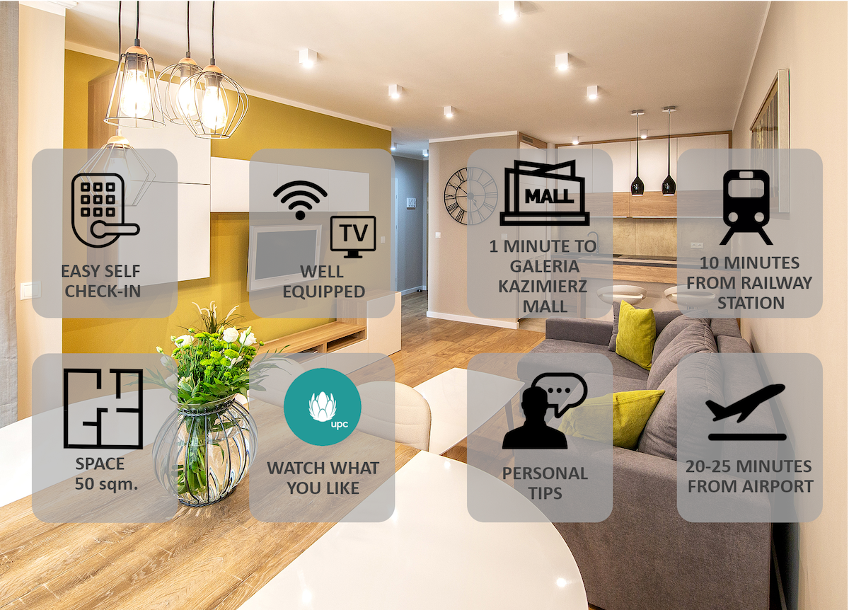 Doskonałe miejsce na nocleg podczas podróży służbowej bądź w trakcie wakacji. Apartament jest doskonale przygotowany i w pełni wyposażony w niezbędne do codziennego funkcjonowania rzeczy. Bardzo dobra lokalizacja sprawia, że mają Państwo blisko zarówno do ścisłego centrum jak i na spacer bulwarami wiślanymi . Doskonale skomunikowane miejsce z którego można dojechać w każdy zakątek miasta liniami tramwajowymi (2 przystanki tramwajowe do wyboru zaledwie w odległości kilku minut pieszo)