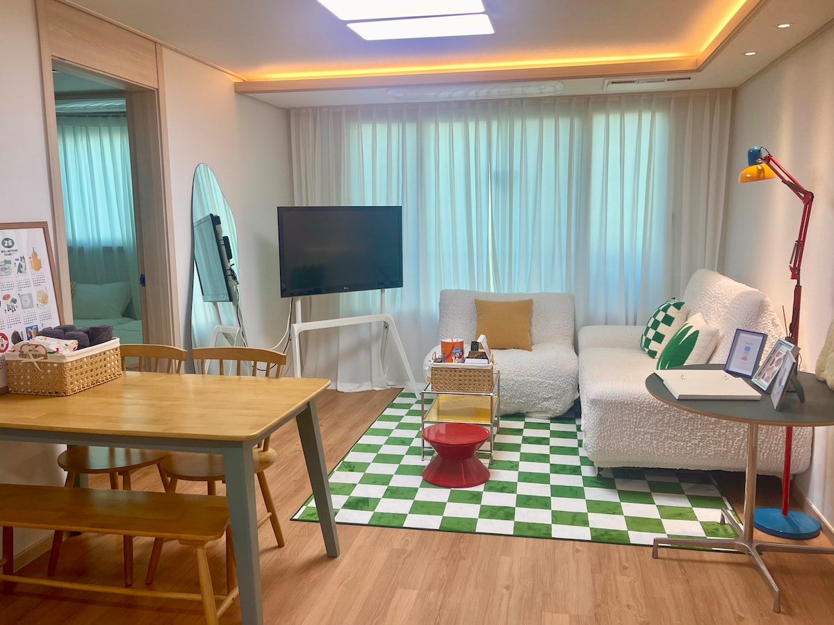 【3间客房+2个卫生间】宽敞的客厅和房间,距离上水站5分钟,靠近弘大