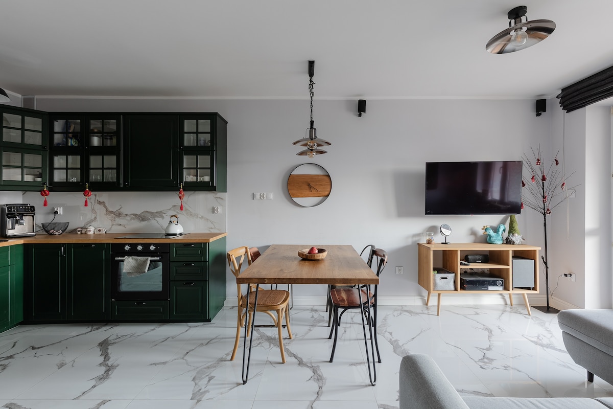 Do Apartamentu Miętowego prowadzą urocze, pomalowane na biało schody. Znajduje się on na trzecim piętrze, co gwarantuje ciszę i intymność. Został przygotowany z myślą o maksymalnie trzech osobach. W apartamencie jest również wyposażony aneks kuchenny a w łazience zestaw podstawowych środków higienicznych i ręczników.