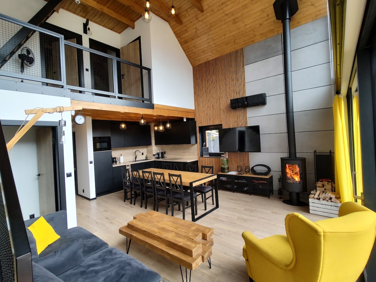 Picturesque location with a view of the Tatra mountains. Forest, river, ski slopes, thermal baths, tracking trails, bicycle paths nearby. Modern decor with elements of wood. In the house you will find all you need for a cosy stay: - jacuzzi and bonfire spot - panoramic terrace, grill, deckchairs - spacious living room with comfortable sofa, WIFI, Netflix - dining area and opened kitchen with a dishwasher - 2 bedrooms with continental beds - 2 baths - parking.