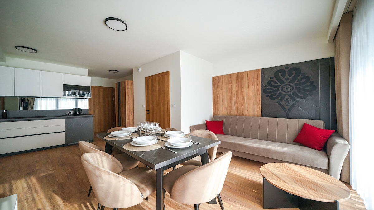 Luksusowy dom w górach'' DeLuxe '' wybudowany w 2017 roku,położony w cichej i spokojnej dzielnicy Nowego Targu.Dom wybudowany w tradycyjnym stylu góralskim,nowocześnie urządzony i wyposażony,idealny na wypoczynek przez cały rok.Z domu rozciąga się piękna panorama obejmująca Tarty,Gorce oraz okoliczne miejscowości. Z dala od zgiełku miasta,wśród lasu w ciszy i spokoju można odpocząć spojrzeć na świat z dystansu i ''naładować baterie''.