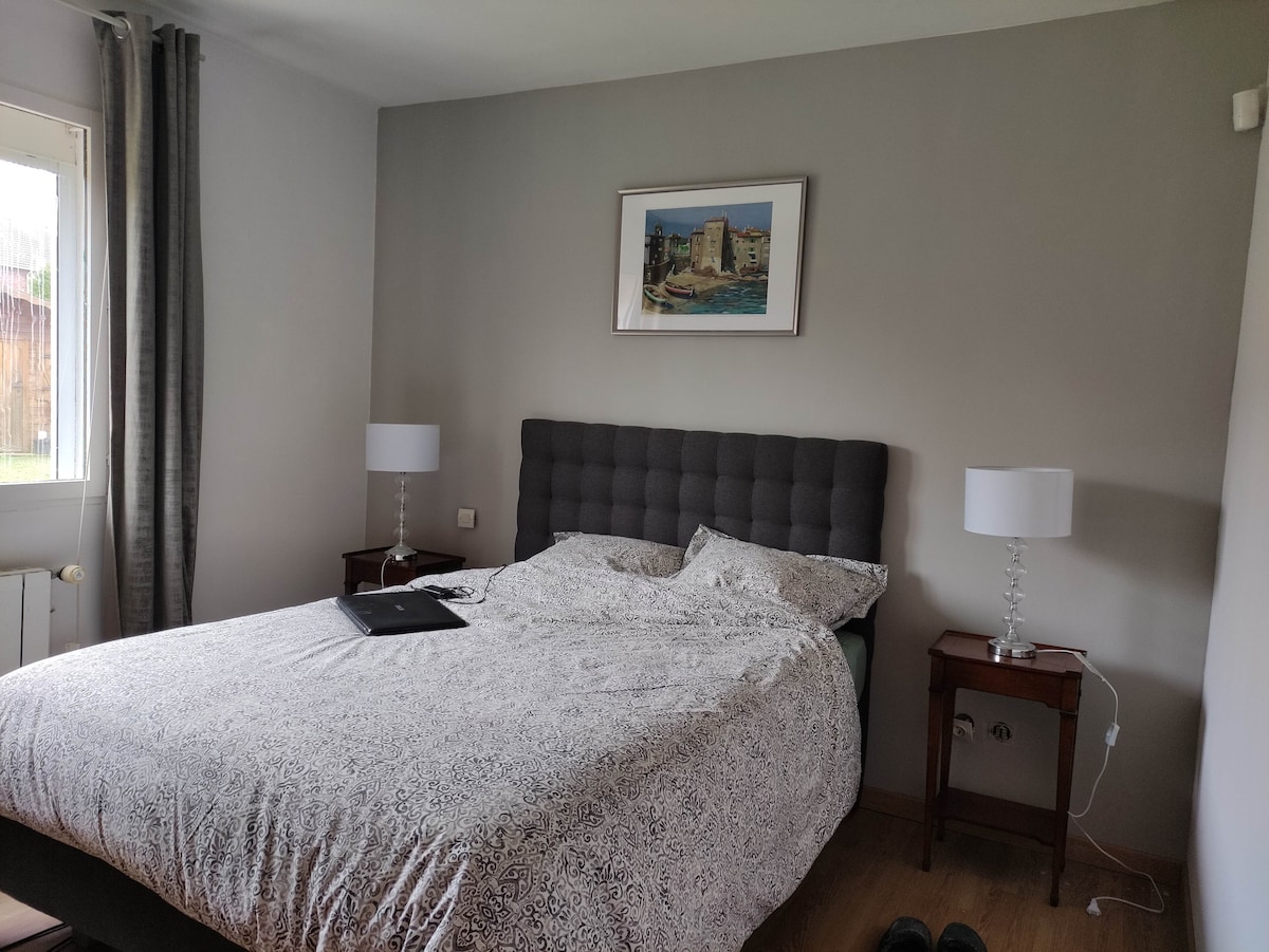 Ma modeste et accueillante maison, que je partage, offre, aux voyageurs, les moyens de se détendre, de se restaurer et surtout de se reposer. La chambre est grande, très calme et confortable avec son lit queen size, son coin thé ou café et son bureau face à la fenêtre. La salle de bain est agréable et fonctionnelle. Le séjour et la cuisine sont aussi à leur disposition pour une cuisine rapide… la terrasse plein sud et le jardin leur offrent la possibilité de manger dehors ou prendre le soleil sur la terrasse. Enfin tous les ingrédients sont là pour passer un séjour apaisant et reposant.