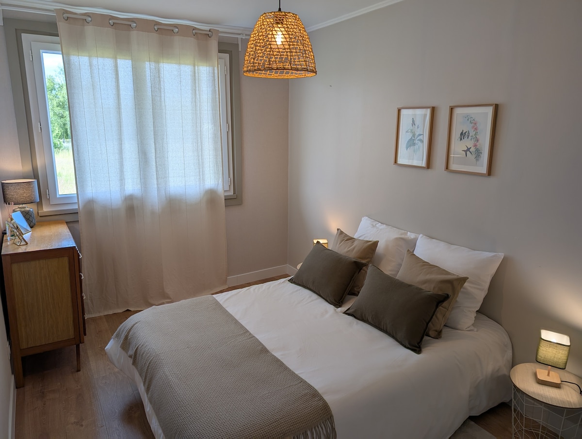Logement de 109 M2. 2 chambres avec lits de 140 pour l'une et 160 pour l'autre, et une bibliothèque avec un canapé convertible de deux places, salle de douche double vasques. Salon salle à manger et cuisine de 50m2. Pour l'été, terrasse de 60 M2 avec plancha et salon de jardin accessible par la cuisine et le salon.