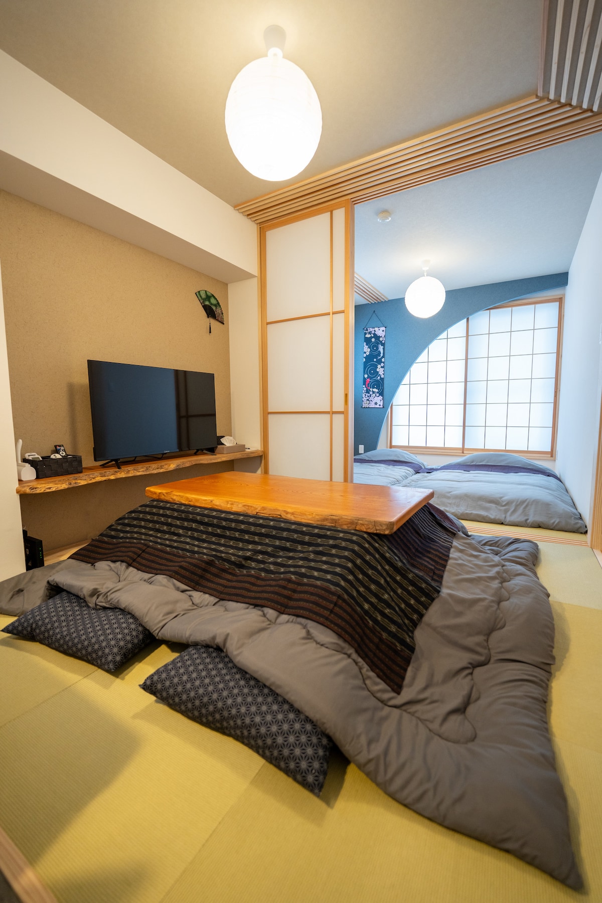 フルリノベーションにて伝統的な和の設えにモダンなデザインを合わせ、畳の心地よさとやわらかな照明に囲まれた空間をご用意いたしました。善光寺も徒歩圏内。権堂アーケード目の前で飲食店も充実しています。車で60分内に行けるスキー場も多く、ロケーション抜群です。 ◎同ビル3階にも【ヒカリとテラス 心 】(同タイプ・定員7名様)がございます。 2・3階合わせて、グループでのご滞在も可能です。 https://www.airbnb.jp/rooms/1517186624195821172?photo_id=2381438099&source_impression_id=p3_1763175280_P3_V8J-0RRLMPaBT&previous_page_section_name=1000 ※お車でお越しの方 無料の専用駐車場がございます。(徒歩1分) 宿内に駐車カードがありますので、車のダッシュボードに掲示をお願いします。退室後、その駐車カードは宿にお戻しください。