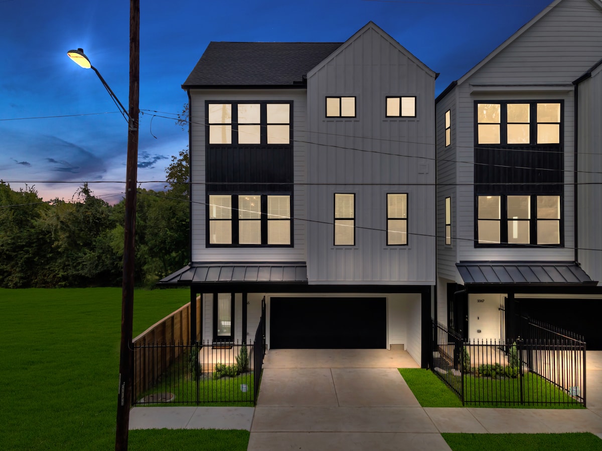 Welcome to The Hideaway. This spacious home is perfectly located minutes from Minute Maid Park, Toyota Center, Texas Medical Center, Houston Zoo, Museum of Fine Arts, George R Brown Center and Reliant Stadium. Relax and enjoy a brand-new modern 3 story build. Perfect for hosting your family and friends. Indulge in some of Houston's finest hometown cuisines such as The Breakfast Klub, Brennan's of Houston, Turkey Leg Hut and Pappadeaux Seafood. The house is equipped with 24/7 surveillance.