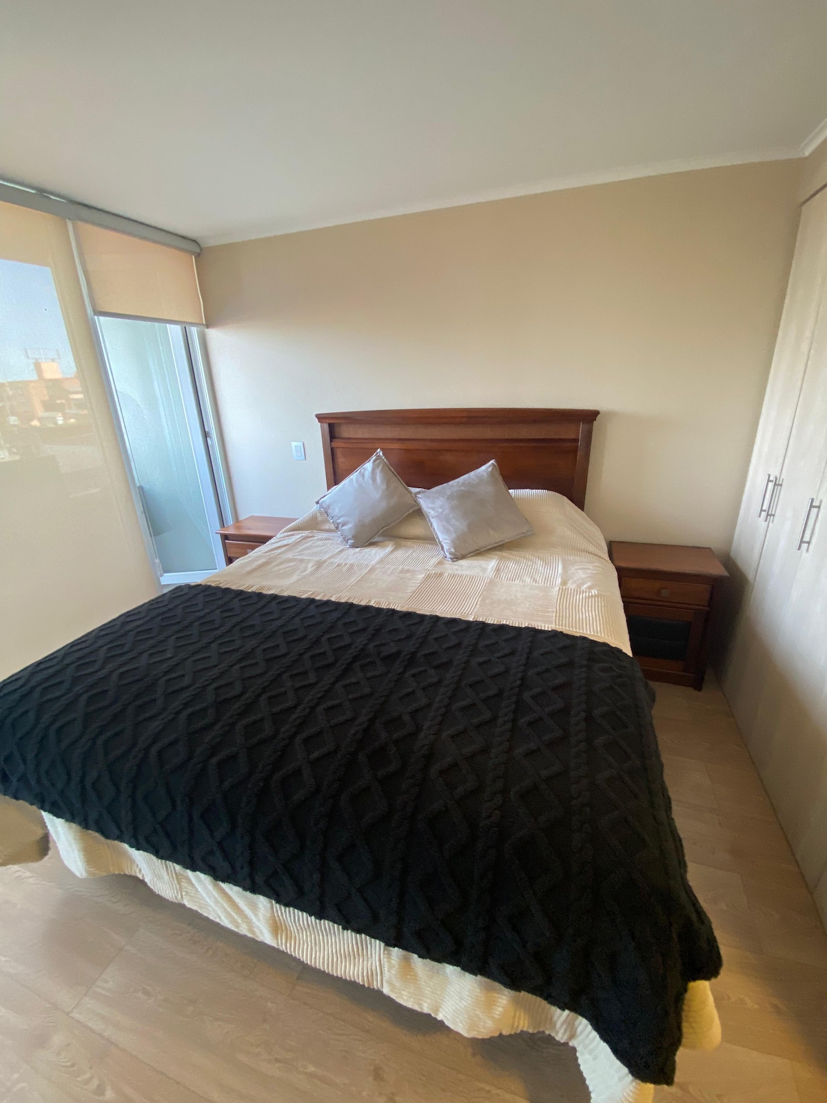 Departamento céntrica ubicación, cuenta con: • Dos Dormitorios (1 cama matrimonial y 1 de una plaza) • Termopanel • 1 baño • 1 sofá cama cómodo (Estándar Apart Hotel ) • Cocina americana full equipada, Full Electric. • Escritorio • Conexión Wifi • Smart TV en habitación principal • Calefacción Eléctrica Conserjería 24 horas Estacionamiento (no apto para camioneta grande)
