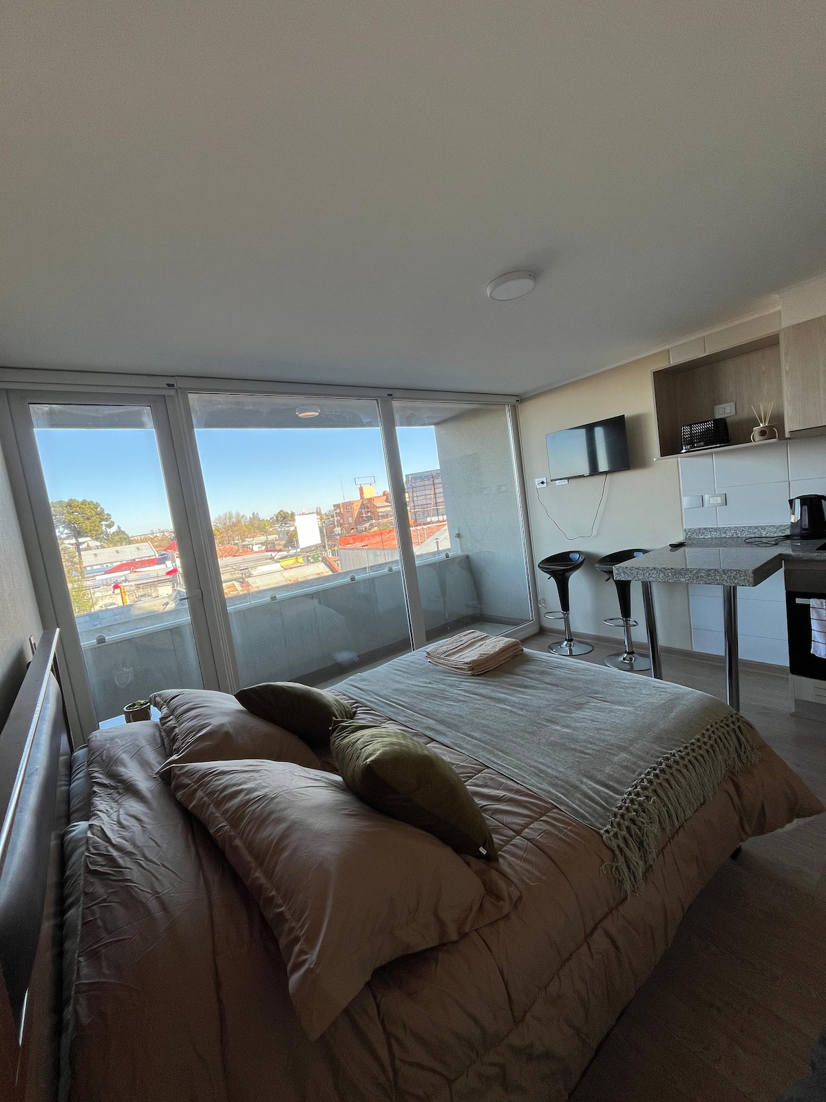 Disfruta de la sencillez de este alojamiento tranquilo y en pleno centro de Chillán. Ubicado a una cuadra de la plaza de armas y mall, rodeado de supermercados, restaurantes, bancos, mercado, etc. muy confortable y equipado. Cuenta con gimnasio, lavandería y sala de cowork.