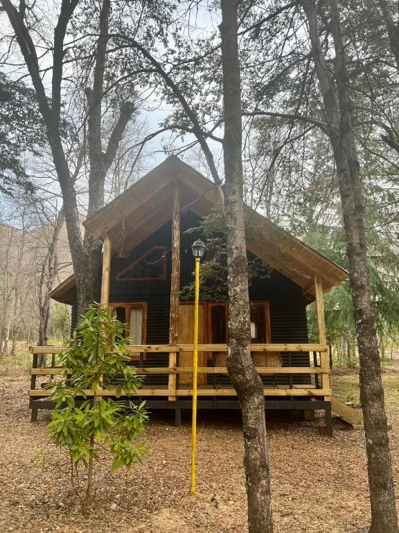 Cabaña en las trancas, a 11Km de las termas de Chillan- Nevados de Chillan. Un ambiente, una cama doble plaza, cocina Americana equipada, refrigerador, calefacción bosca, secador de pelo, ropa de cama, vajilla completa, parrilla, wifi, Tv 32 con internet, Netflix, Amazon Prime, Disney Plus.