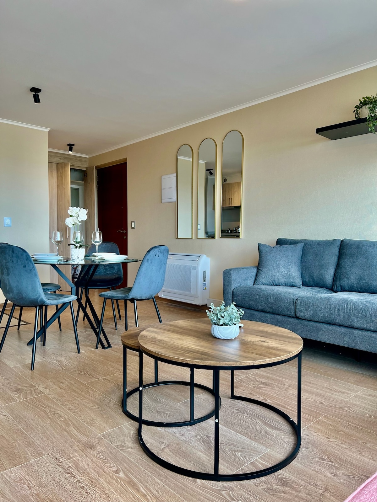 Disfruta de la sencillez de este alojamiento tranquilo y en pleno centro de Chillán. Ubicado a una cuadra de la plaza de armas y mall, rodeado de supermercados, restaurantes, bancos, mercado, etc. muy confortable y equipado. Cuenta con gimnasio, lavandería y sala de cowork.