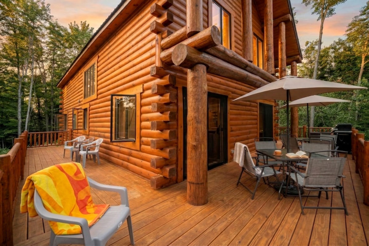 🌲 Ironwood Lodge | Log Cabin Retreat | Sauna • Ski • Near Harbor Springs | Sleeps 12 | Pet-Friendly Just minutes from Harbor Springs and Petoskey, yet worlds away from the hustle, Ironwood is a peaceful, hand-crafted log cabin that blends Northwoods solitude with classic resort-town charm. Perched on a wooded hill with views toward The Highlands Ski Area, this pet-friendly retreat offers quiet seclusion while keeping you close to the area’s best attractions, dining, and outdoor adventures.