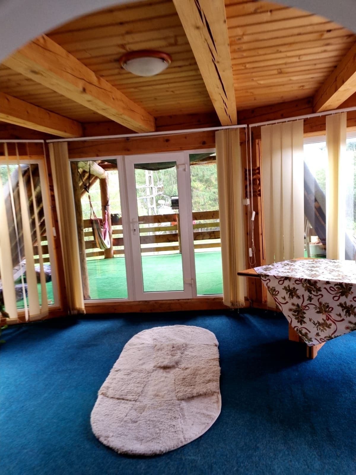 Relaxează-te cu întreaga familie în această locuință in mijlocul naturii. Este situata la poalele Vf Moldoveanu( cel mai inalt din Romania) , la 20 min de Manastirea Corbii de Piatra: un punct turistic important din Romania! Cabana beneficiaza de Ciubar( fibra de sticla ) pret suplimentar.Cabana face parte dintr un complex de 3 cabane A-Frame! Cabana beneficiaza de loc joaca pentru copii si un foisor incalzit!