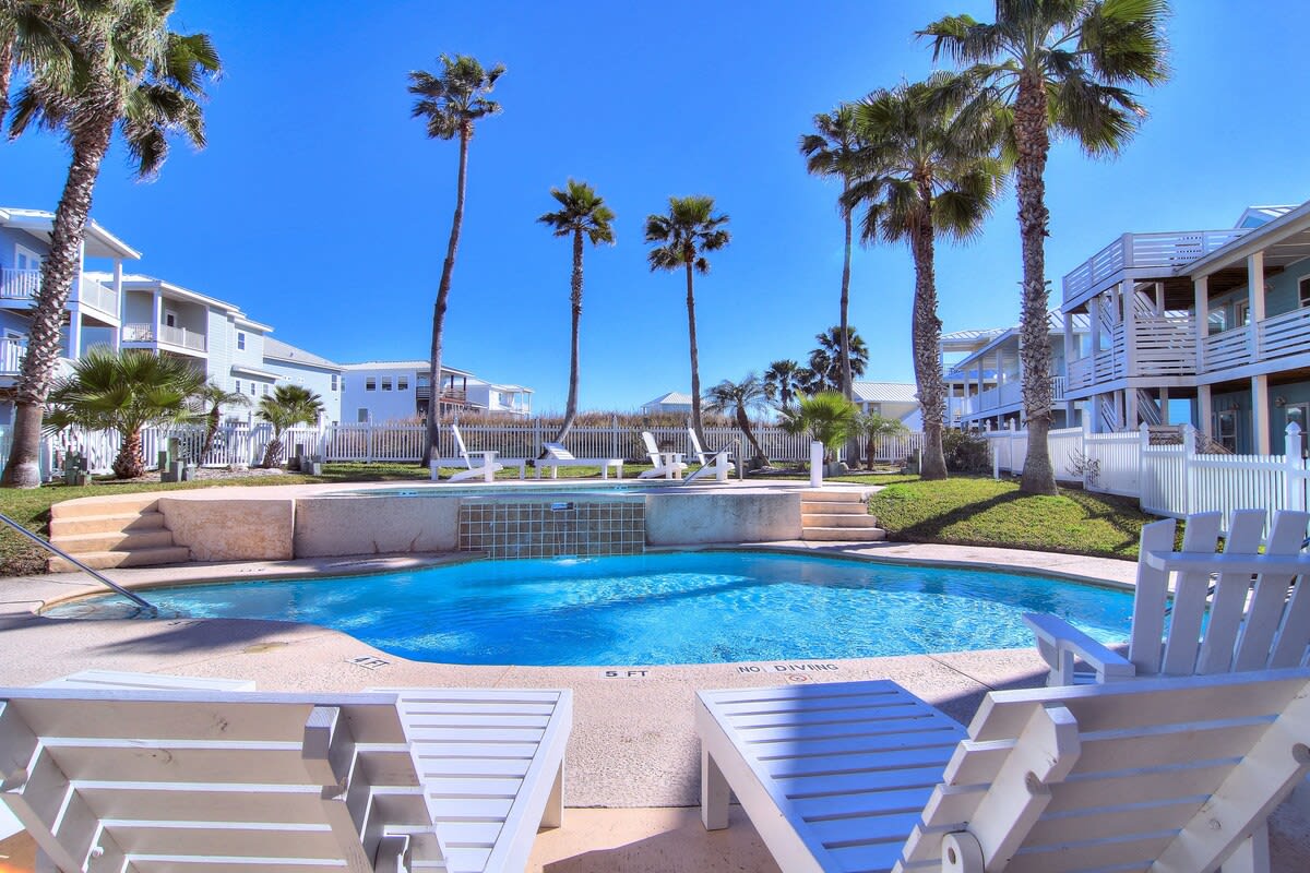 Grab your swimsuit and some sunscreen for a Gulf Coast escape to this 2-bed, 2-bath condo. This comfy escape boasts colorful coastal decor, a wet bar, a private deck overlooking the community pool, and a fully equipped kitchen. Spend your days lounging by the pool, playing in the game room, or strolling along Mustang Island Beach. With dining and shopping in Port Aransas or day trips over to Corpus Christi, you and your furry friend always have another adventure!