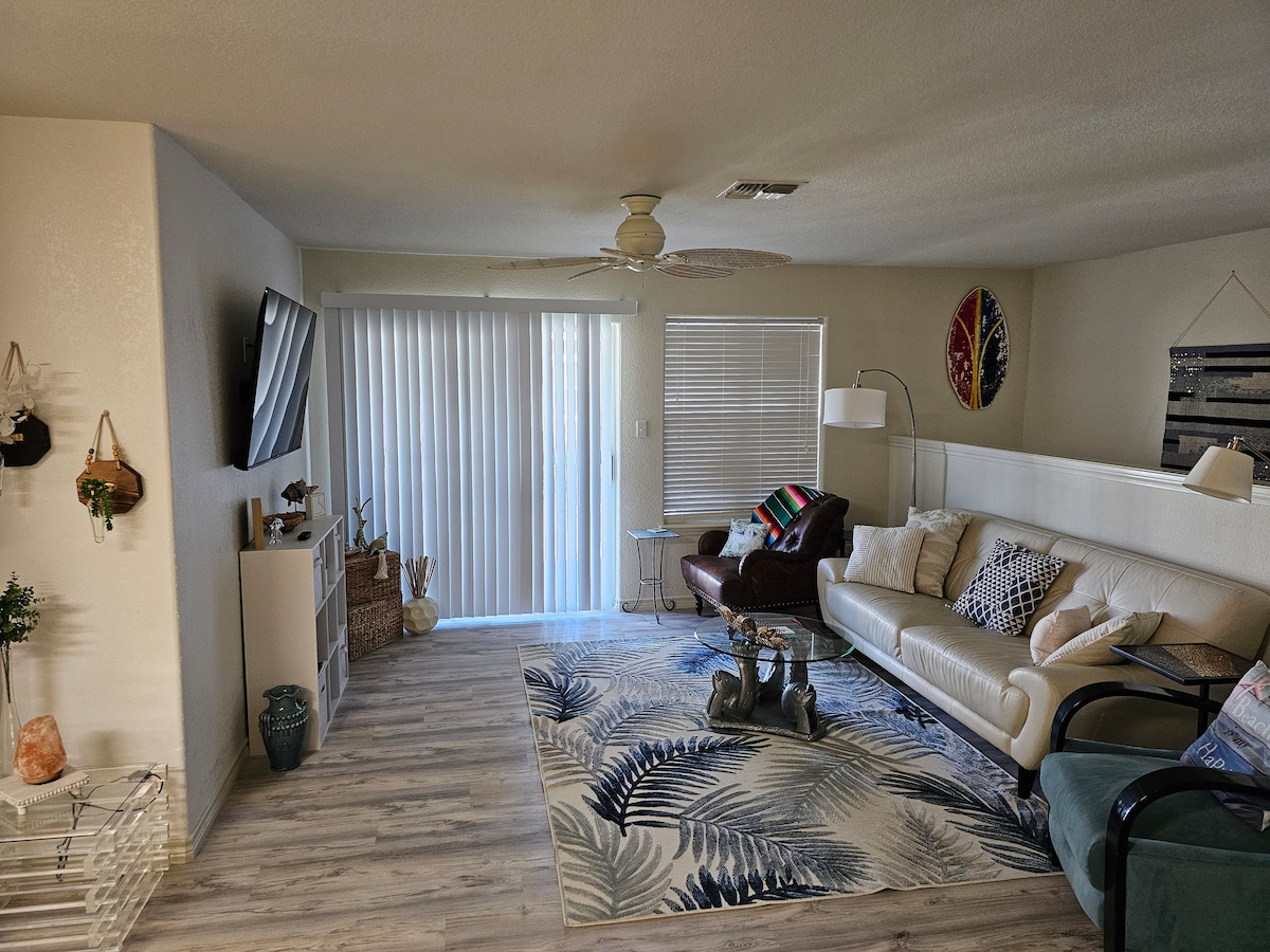 This ground level condo is stocked to make your stay enjoyable. The reviews don't lie, the bed is comfortable. For your protection we disinfect all remotes, light switches, door handles knobs and handles with a solution recommended by the CDC to kill any surface viruses. We wash all linens, quilts, towels and bath mats between each guest. There is a Wildlife Refuge across the street with walking trails that run along the Oso Bay. $40 nonrefundable pet fee will be charged if bringing a pet.
