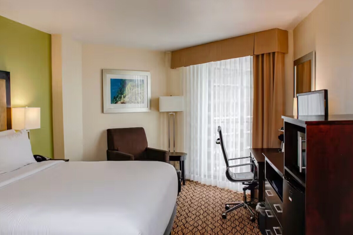 Located near North Shore beaches and the Texas State Aquarium, La Quinta Corpus Christi – Portland offers a relaxing stay close to the coast. This king room features a plush bed, microwave, mini-fridge, and scenic views of the area. Guests enjoy a free breakfast, outdoor pool, and convenient access to Corpus Christi attractions.