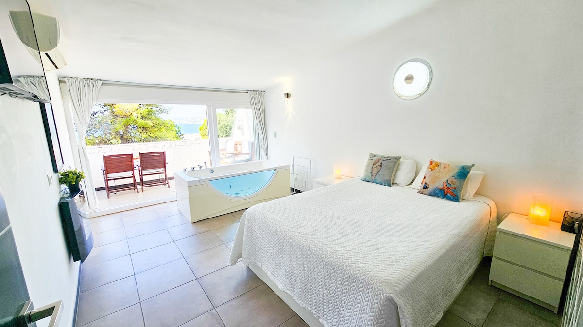 阳光明媚的房间,可欣赏海景, Mijas Costa ,马拉加