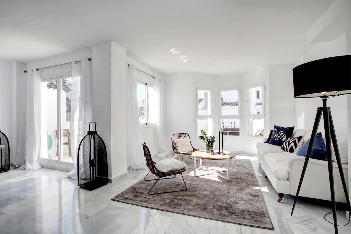 Stay in this stunning newly renovated duplex penthouse in La Maestranza. Walk to Puerto Banús, beaches, El Corte Inglés, top restaurants, and shops. Within 2 minutes walking you have a supermarket, restaurants, butcher & shops. With 3 stylish bedrooms, 3 terraces, modern Scandinavian interiors, and garage parking, it’s perfect for families or friends. Enjoy gated security, pools, lush gardens, a gas BBQ, and beautiful views of La Concha mountain—your dream Marbella escape awaits! 🌞✨ Welcome!