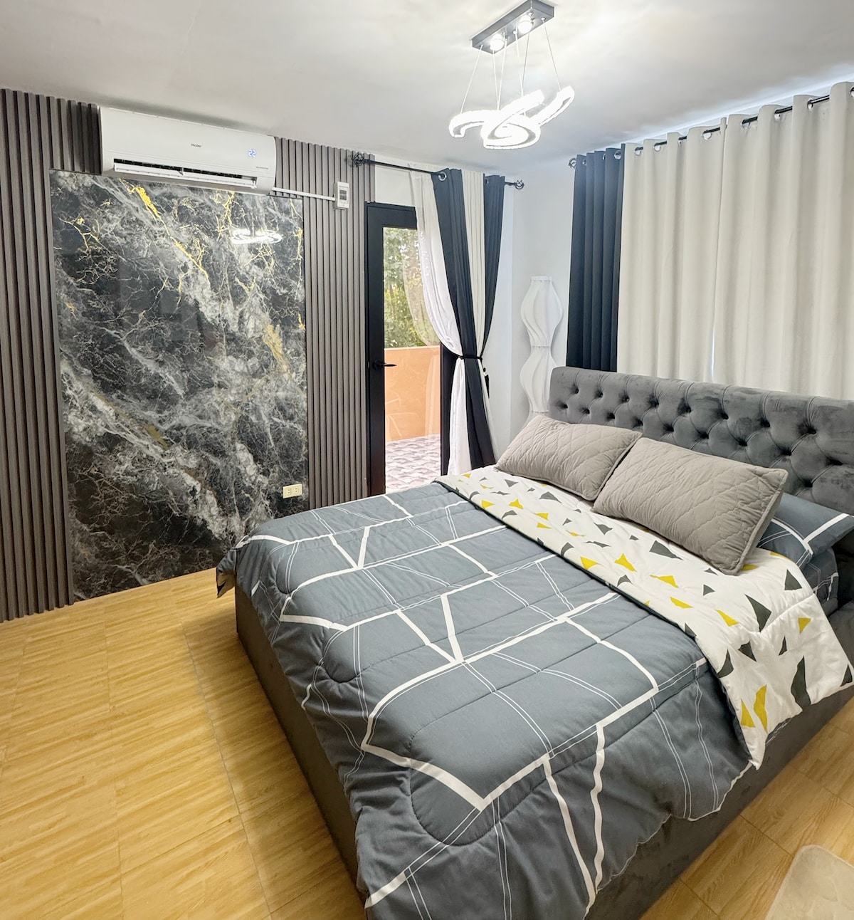 A haven for people who wants a staycation memorable with peaceful ambiance. It has a spacious and convertible bedroom with movable cabinet/division for a (two) 2 queen size bed. A Fully functional kitchen that is well lighted and ventilated where you can cook. With an 8cubic Fridge and a pantry cabinet for food: snacks, can goods, softdrinks available. • It's a fully airconditioned Haven with 2.5 HP Split type AC, plus 2 eletric fans for added air circulation • A clean bathroom with bidet etc