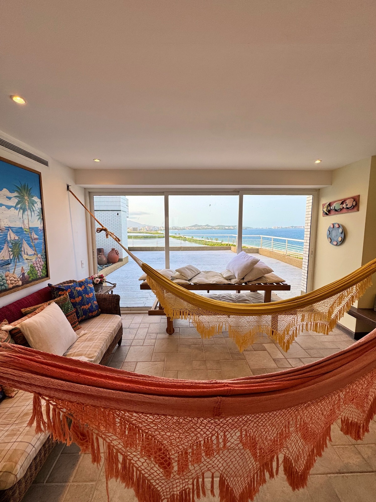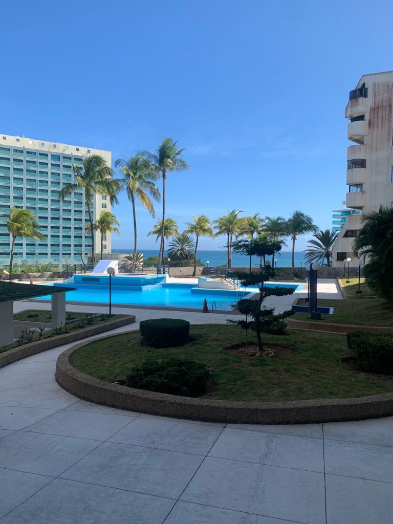 Apartamento frente a la playa totalmente equipado. Caminando centro comerciales (Sambil), restaurantes, bodegones, farmacia, kartings, contenedores de feria de comida, y servicio de transporte público. Bellas áreas sociales, piscina, área de parrillera, vigilancia 24h, y estacionamiento. El apartamento cuenta con 2 habitaciones y 2 baños. La habitación principal cuenta con una cama Queen, mientras que la segunda habitación con 2 camas individuales. En la sala se encuentra un sofa cama Queen.