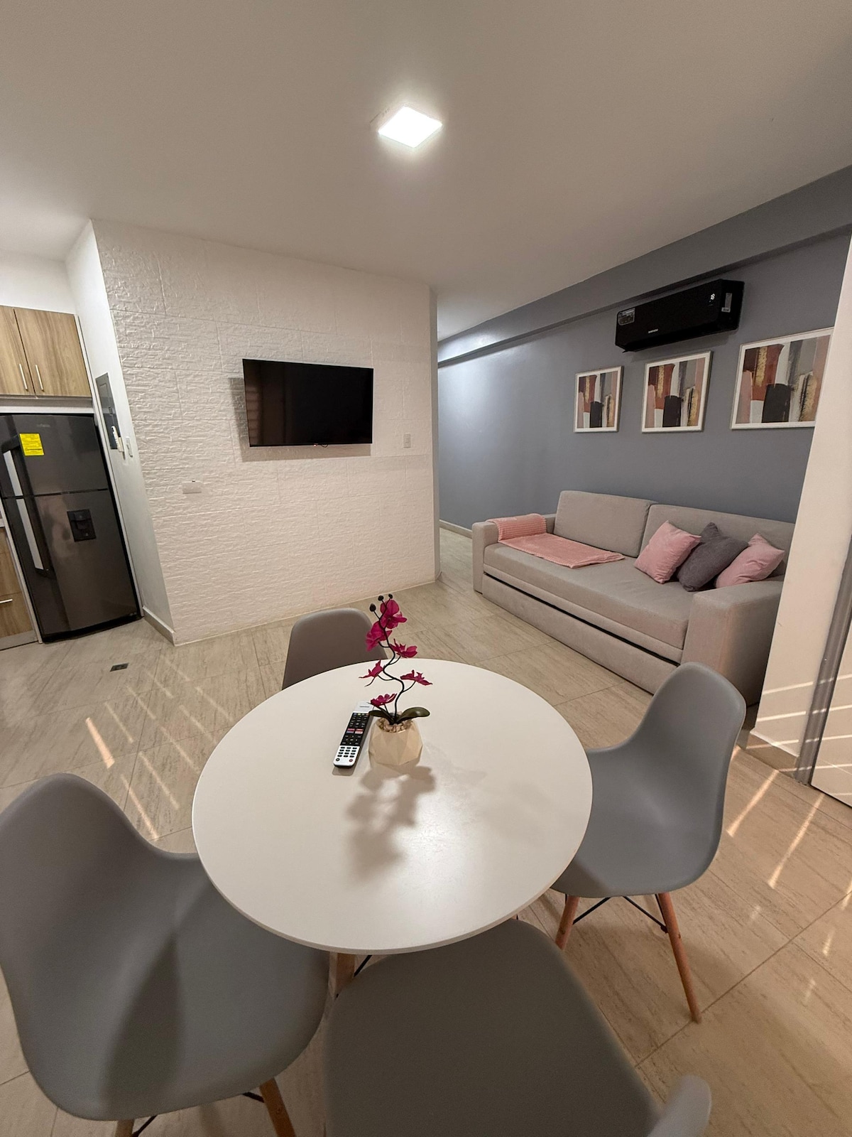 Welcome to our cozy apartment, a charming retreat designed to make you feel at home from the very first moment. The décor blends warm details with a natural ambiance that invites you to relax—perfect for a peaceful getaway with family, friends, or your special someone.
