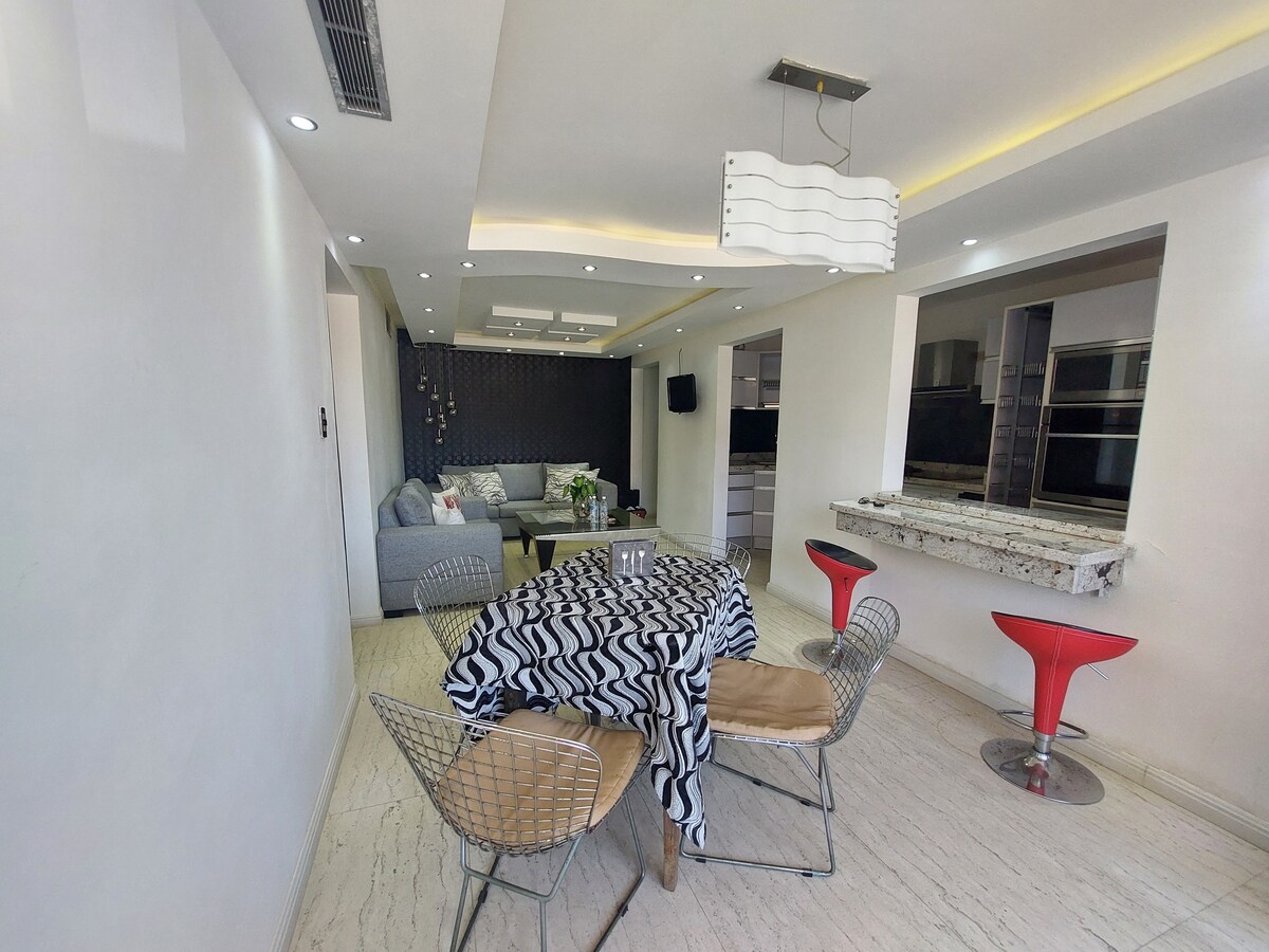 Disfruta de un cómodo apartamento en la mejor av principal de la Isla, cerca de restaurantes, bodegones, sitios nocturnos, farmacias y centros comerciales. Puedes salir caminando del edificio, contarás con todas estas atracciones. Tu familia estará cerca de todo cuando te quedes en este alojamiento céntrico.