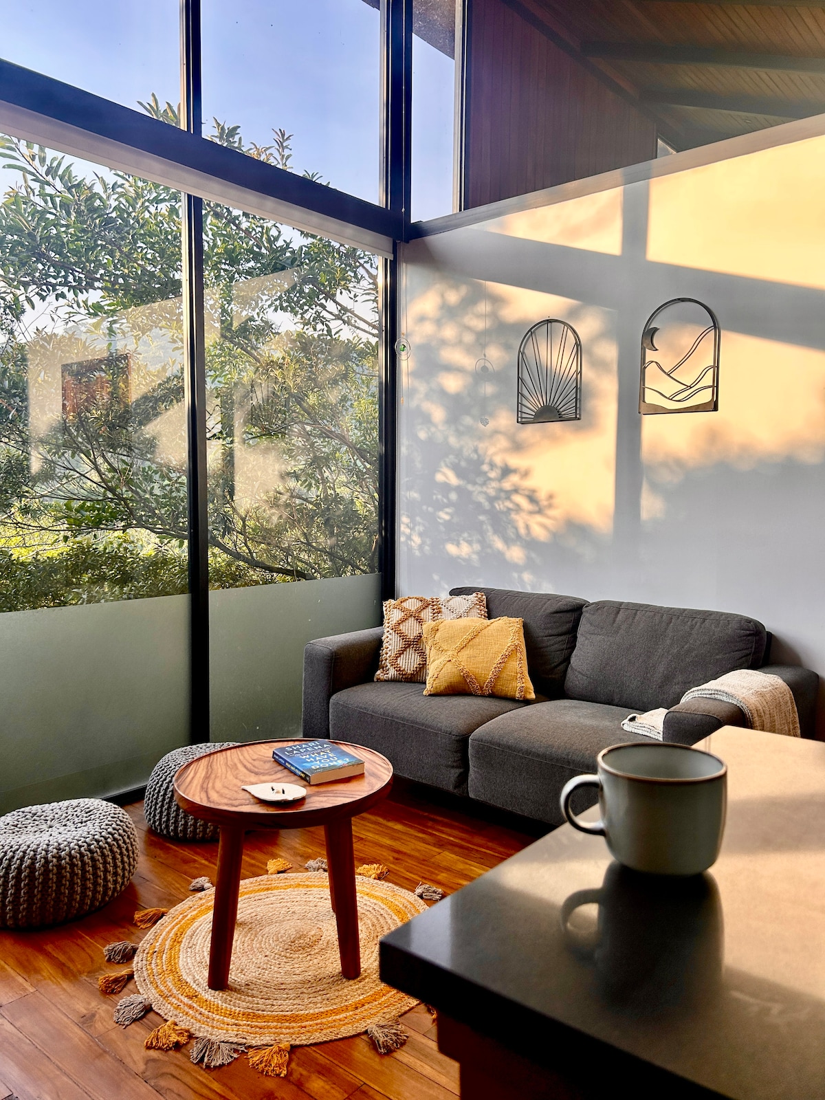 Perched on a 6-hectare farm, this home was built recently as a nature retreat — a peaceful hideaway surrounded by lush greenery, rolling hills, and stunning views of the Gulf of Nicoya. As soon as you arrive, you’ll feel the serenity of the Costa Rican Cloud Forest. Let your ears tune in to birdsong and the occasional monkey chatter in the trees… This is a space for rest, reconnection, and inspiration — whether you’re watching breathtaking sunsets from the terrace or hiking the on-site trail.
