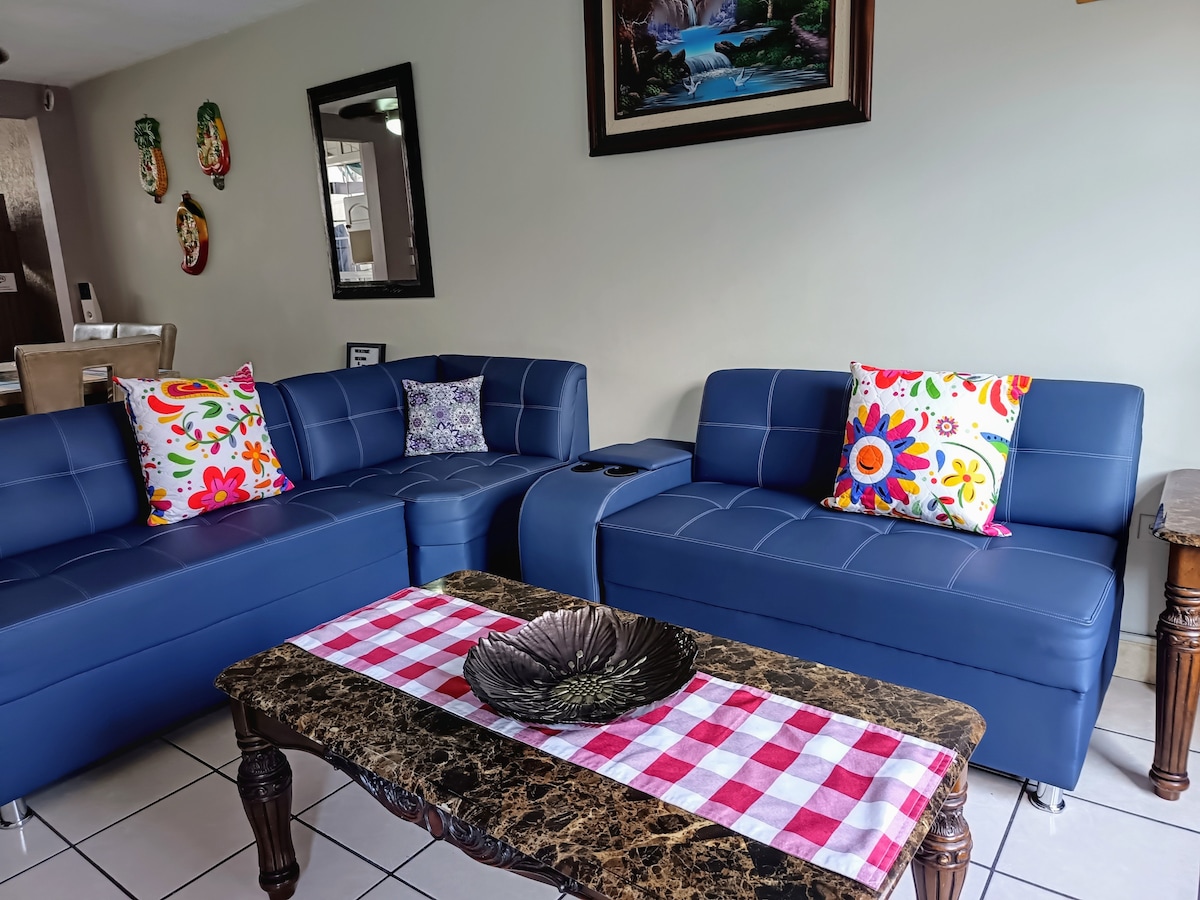 Disfruta de una estancia cómoda, segura y acogedora con ac cerca de todo Nuestro espacio está diseñado para familias o parejas que desean vacacionar cerca de los lugares más atractivos de nuestro país . OJO: NO te estreces buscando estacionamiento: tenemos parqueo disponible,gratis y muy seguro Estamos ubicados en una zona súper excelente y céntrica,para que puedas movilizarte caminando a diferentes lugares: Malls, supermercados, Farmacia, mercadito,parques,playa, balnearios, volcán,etc.