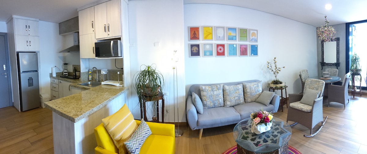 Espacioso y moderno alojamiento en la mejor zona del Centro de Monterrey con una excelente vista al Cerro de La Silla. El departamento se encuentra a solo dos cuadras del CAS para tus trámites de visa, las principales atracciones turísticas, hospitales, restaurantes, complejos para conciertos y centros de negocios están todas a menos de 10 minutos en auto.