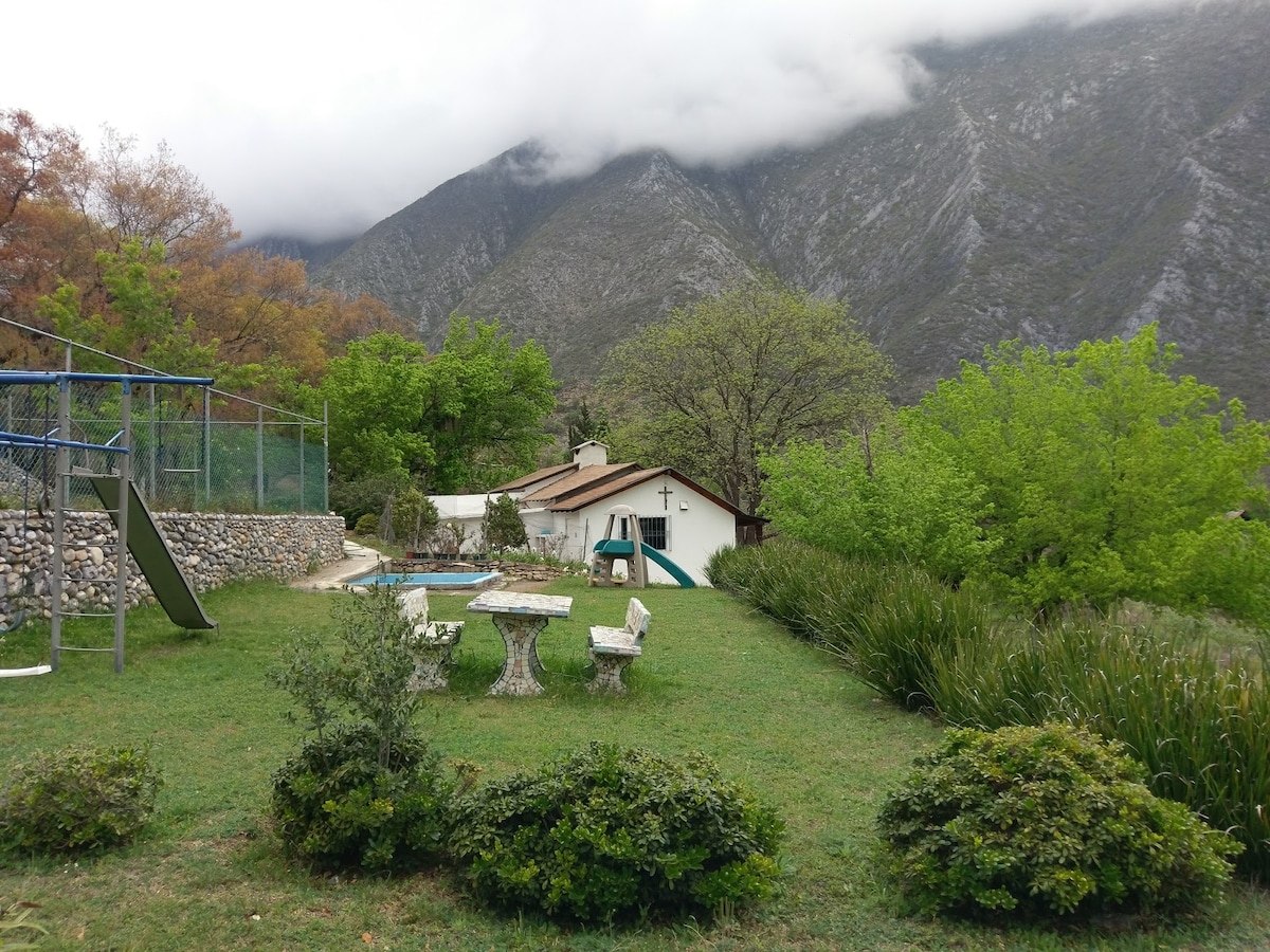 Un encantador oasis de tranquilidad rodeado de naturaleza, a solo treinta minutos de Monterrey. Acogedora y pensada para regalarte momentos de paz, diversión y descanso. Perfecta para parejas, familias o grupos de hasta 8 personas. Con 🏊‍♂️ alberca 🪵 asador🌙 hamaca ✨ Vive la experiencia del campo con todas las comodidades que mereces. La mejor decisión 🌿¡Reserva hoy!