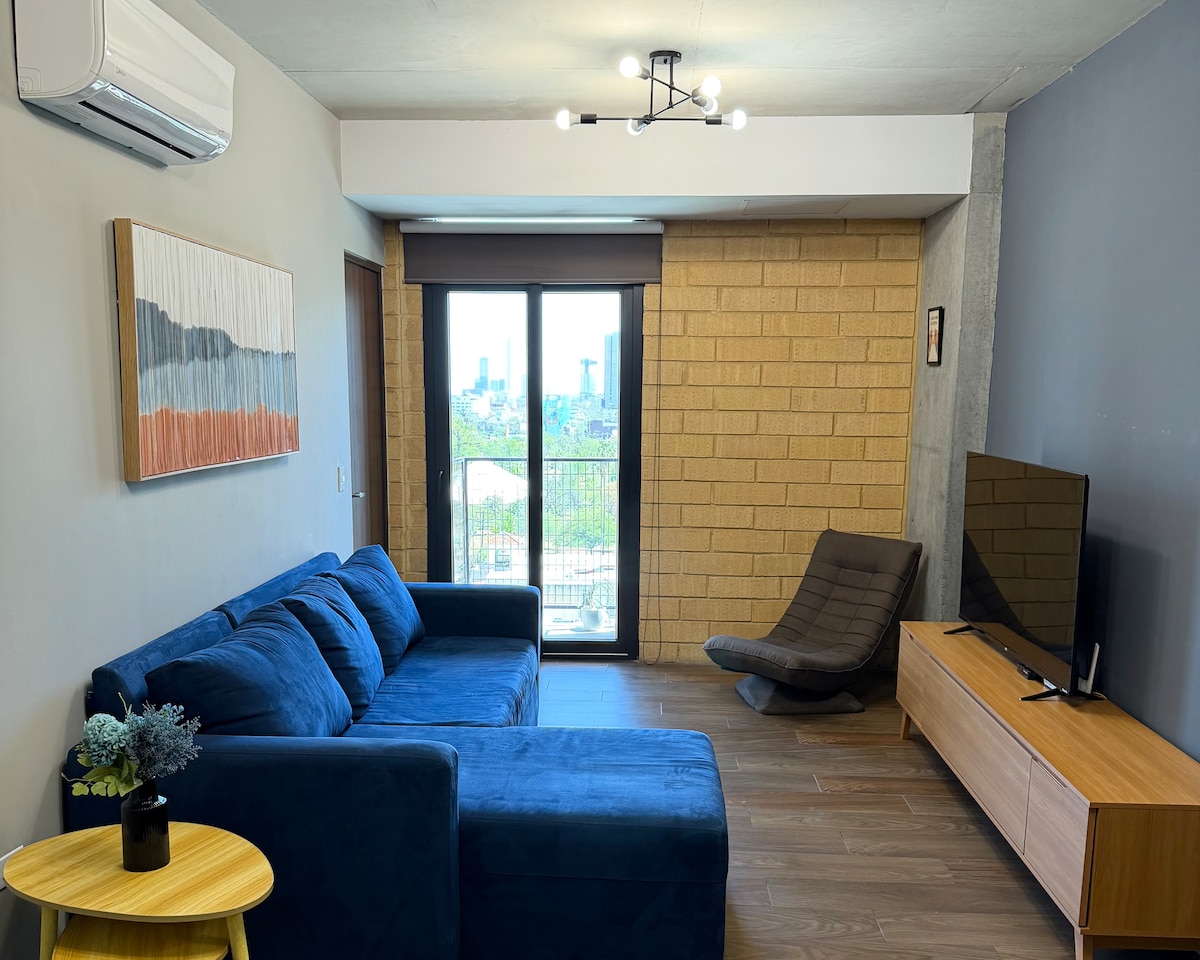 Welcome to Barrio W Tower A in Monterrey! Apartment on the 26th floor with spectacular views, located in downtown Monterrey. Fully equipped for long stays and everything you need for your daily life. 🏆2024 Excellence Award in architecture Amenities: -Pool on the terrace. -Gym. -Coworking space. -Hammocks. 2 minutes from Macroplaza and 5 minutes from the History Museum and Paseo Santa Lucia. The building has paid parking**. Parking meters on all surrounding streets.