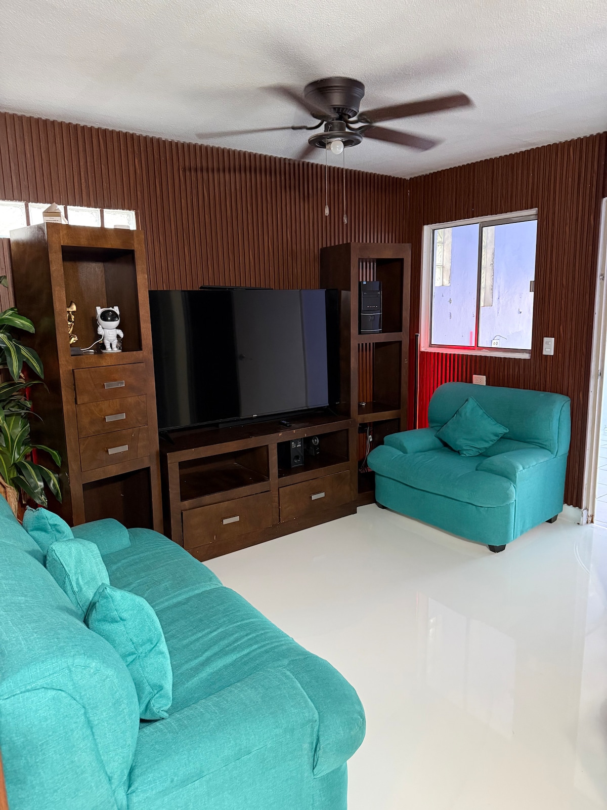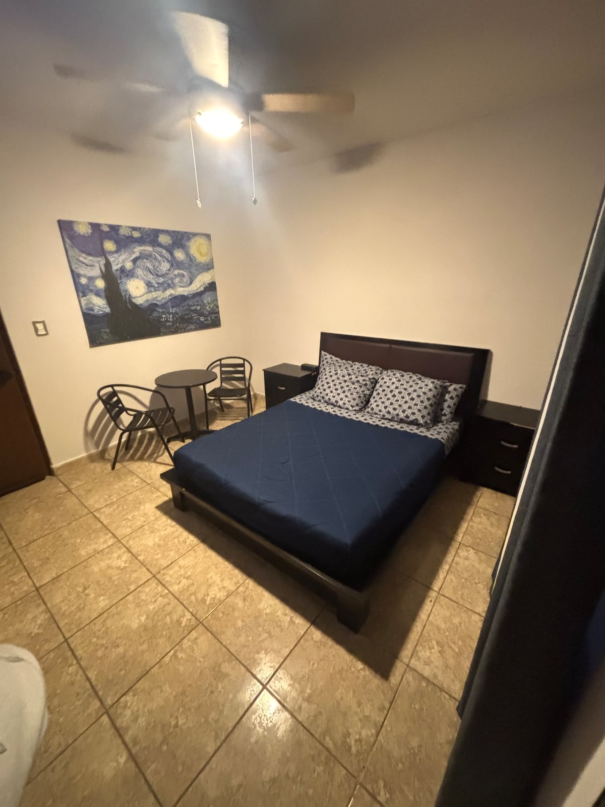 Cuenta con: Wi-Fi 2 habitaciones cama Queen Size con aire acondicionado. 2 sofa camas individuales en la sala con aire acondicionado. Sala con Smart TV 32” (Netflix incluido) Sala de estar con sillones puff. Cocina integral con estufa, sarten, microondas,y un frigobar para tus alimentos. Mesa con platos, vasos y utensilios. Baño y regadera (agua caliente). Lavadora para lavar ropa sucia. Camara de Seguridad. Kit de bienvenida: Café, 4 refrescos, 2 aguas y 2 cervezas