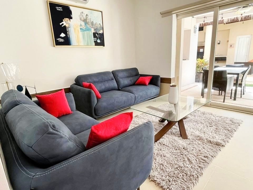 Área de jardín amplia y una palapa cómoda para disfrutar y descansar. Con asador y disfrutar de una convivencia. Cuenta con internet y pantalla 80 canales y servicios de streaming. Dos baños completos con sus amenidades shampoo, jabón; medio baño en el exterior. 4 camas individuales, 1 matrimonial y 1 sofá cama La sala tiene una agradable chimenea con la leña incluida para disfrutar de un momento inolvidable, fogatero en el exterior. Cocina completa, sala y comedor para, incluye juegos de mesa.