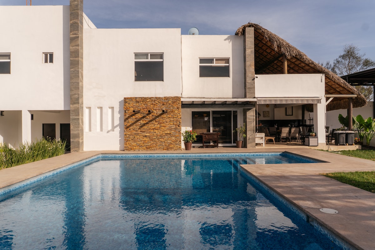 Espectacular alojamiento único y uní-familiar, super equipado con todas las comodidades, acceso privado al Rio Ramos y mas de 12,000m2 de jardines, 200+ arboles, rio interno y puente centenario. Increible casa con todo lo necesario y una magnifica alberca con chapoteadero. Palapa con dos cocinas, asadores de carbon y gas, horno de leña, chimenea, 2 fogateros, jardin de uso multiple, ping pong, futbolito, dardos, arco y flecha, brincolin, etc. Wifi de alta velocidad y audio ambiental.