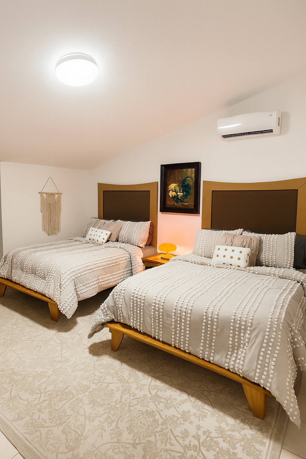 Ubicado en zona residencial privada, segura y entrada independiente. Seguridad, privacidad, comodidad y limpieza garantizada. Contamos con tinaco. Emitimos Factura! TARIFA BASE incluye una habitación para máximo 2 personas. COBRO EXTRA por utilizar la segunda habitación: 1. a partir del 3er y 4to huésped ($200 extras por c/u por noche) 2. En reservaciones de dos personas que quieran utilizar las dos habitaciones ($200 extras por noche)